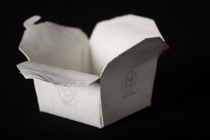 The takeout boxes symbolise the tedious work involved in creating a new dish and writing about it. In a restaurant of a certain caliber, it isn't customary to take food away, and it's also not customary to alter the chef's menu to suit your liking. However, in the case of allergens, it has to be done. The takeout boxes are crafted out of paper porcelain, and instead of tissue, I had used leftover artichoke paper pulp, giving a more fibrous texture and varying translucencies.